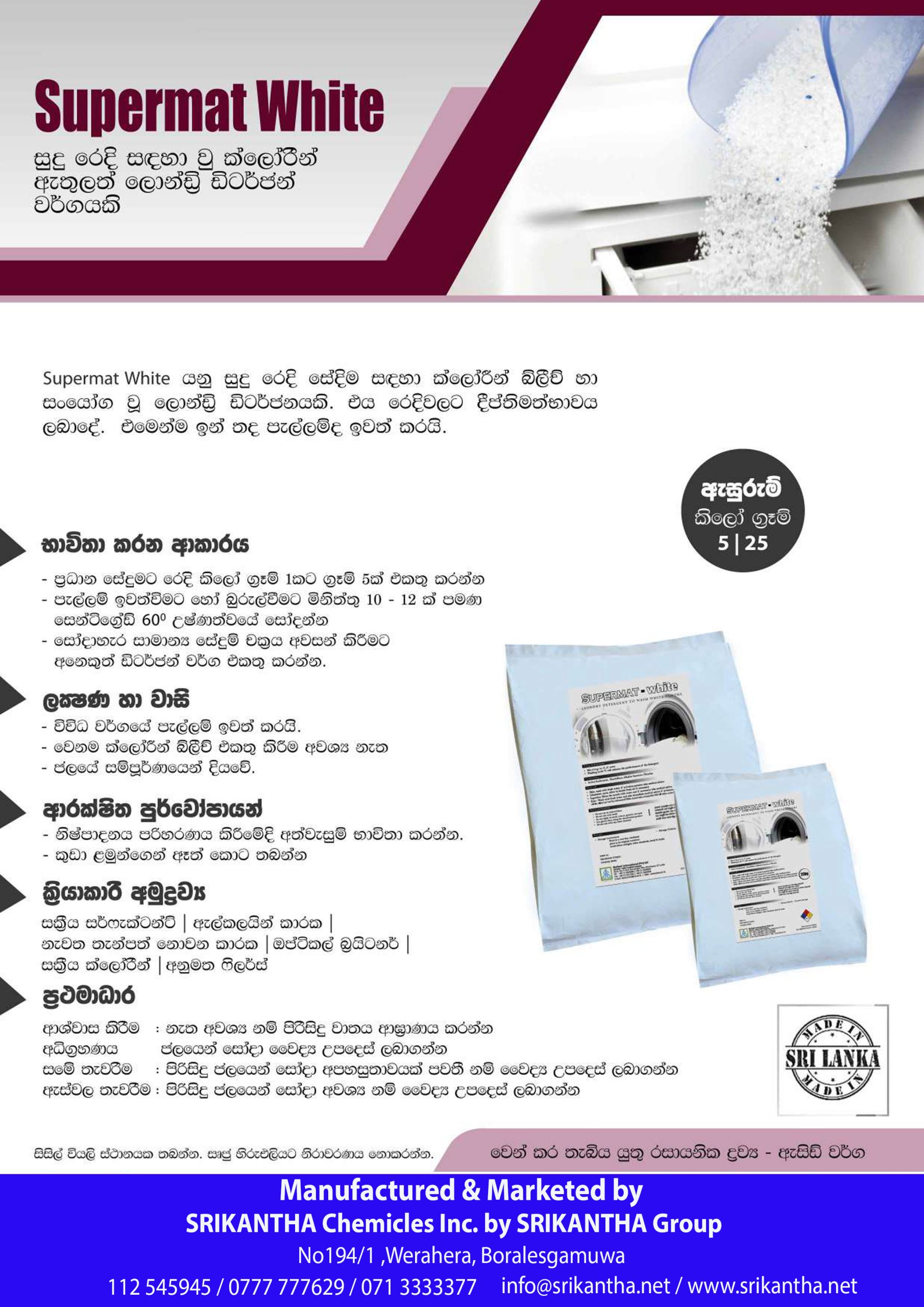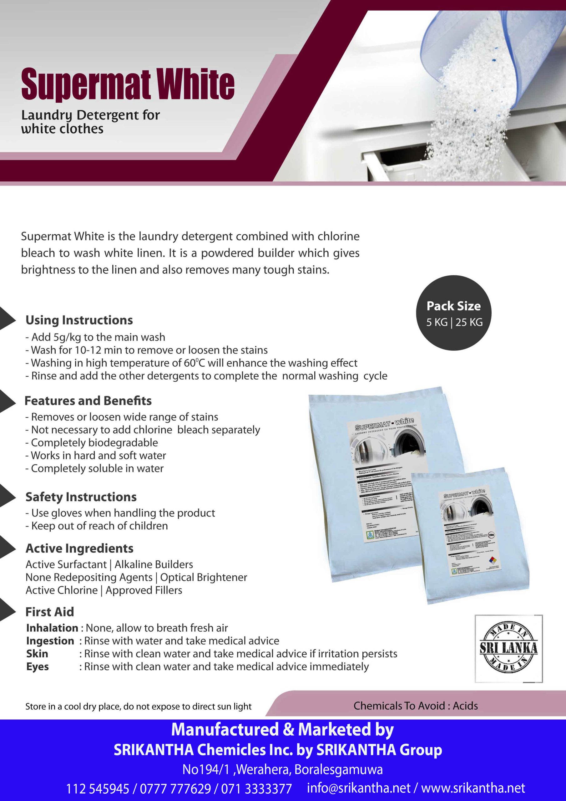 Supermat White is the laundry detergent combined with Chlorine bleach to wash white linen.
